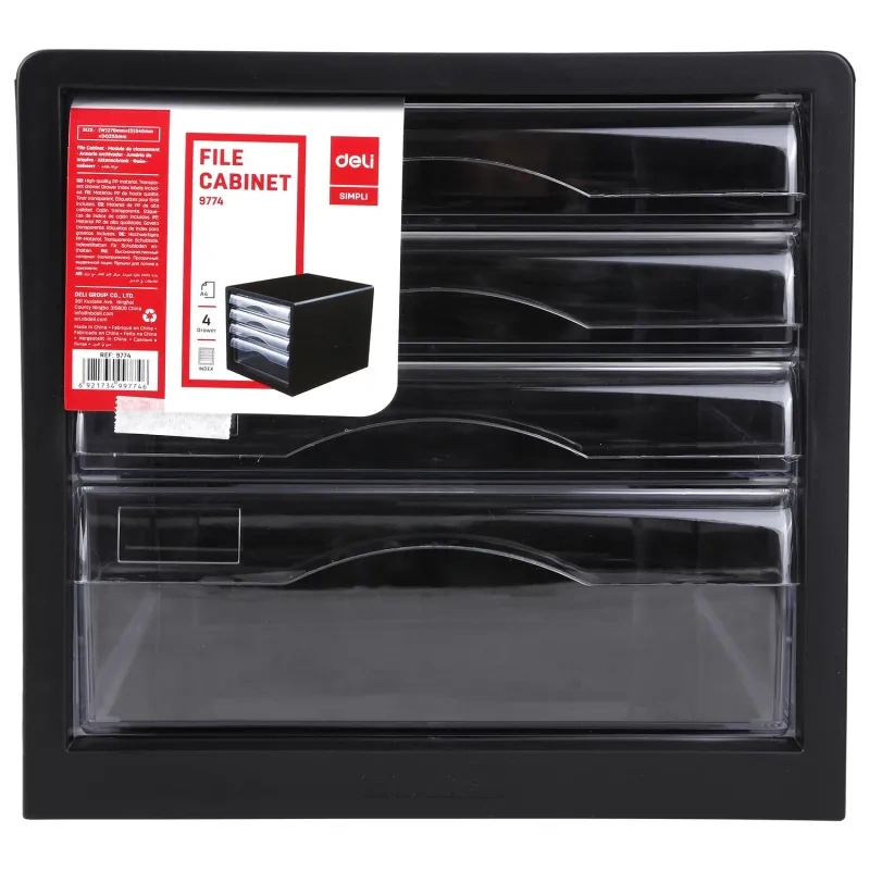 Бокс с выдвижными лотками Deli E9774, 4 выдвижн лотка черный