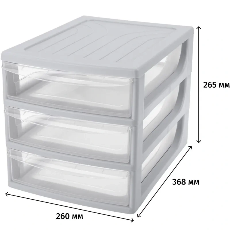 Бокс с выдвижными лотками А4 260х368х265мм 3выдв.отд, светло-сер. 433223930
