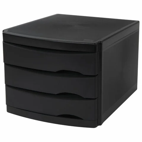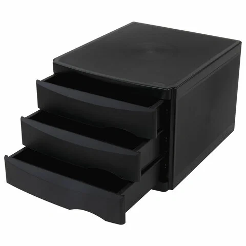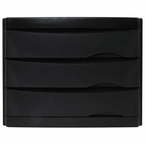 Бокс с 3 выдвижными лотками, корпус чёрный, лотки черные, 235х300х355 мм, BRAUBERG 'Office-Expert',