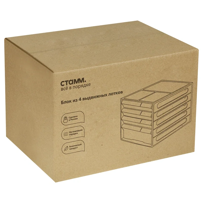 Блок из 4 выдвижных лотков СТАММ, белый корпус, тонированные черные лотки