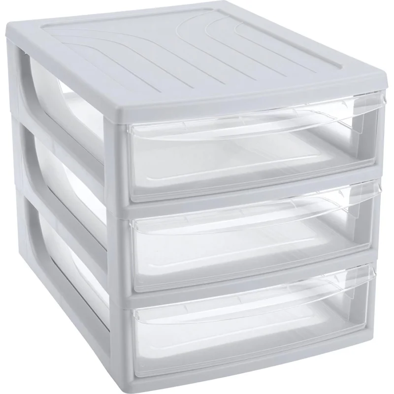 Бокс с 3 выдвижными лотками, корпус светлый, лотки серые, 235х300х355 мм, BRAUBERG 'Office-Expert',