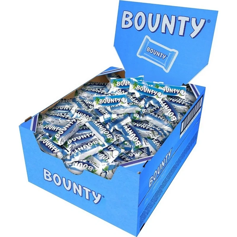 Батончик Bounty Minis шоколадный, 3кг с кокосовой начинкой порадуют красивой и изысканной упаковкой, а также изумительным и неповторимым вкусом. Эти конфеты отличаются нежнейшим вкусом, привлекательным внешним видом. Насладитесь нежным десертом с кокосом. Такое угощение можно преподнести в качестве презента, подать во время праздничного чаепития, использовать в качестве перекуса или украшения торта и других кондитерских изделия. Конфеты и шоколад – неотъемлемая часть подарка на Новый год. Им обрадуются взрослые и маленькие сладкоежки. К тому же конфеты – отличная альтернатива калорийным пирожным и тортам и хорошая идея для похода в гости.