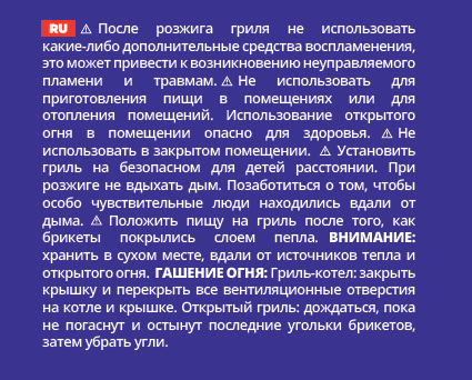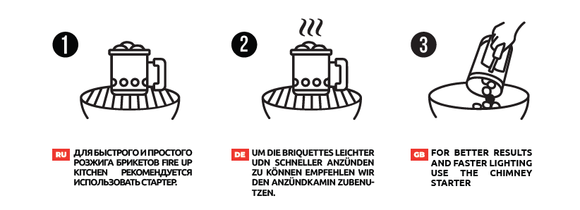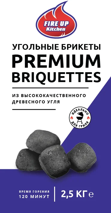 Угольные брикеты Fire Up Kitchen изготовлены из высококачественного древесного угля и являются удобным и эффективным топливом для барбекю и мангалов. Брикеты изготавливаются методом прессования угольной пыли и кукурузного крахмала. Плотная структура брикетов обеспечивает лучшую теплоотдачу, чем обычный древесный уголь, поддерживая стабильную температуру и длительный процесс готовки. При попадании жира или сока с мяса, брикеты не дают открытого пламени, благодаря чему, подгорание пищи исключено. Использование брикетов Fire Up Kitchen обеспечат минимум 120 минут стабильного жара. Для более простого и быстрого розжига брикетов, рекомендуется использовать стартер.