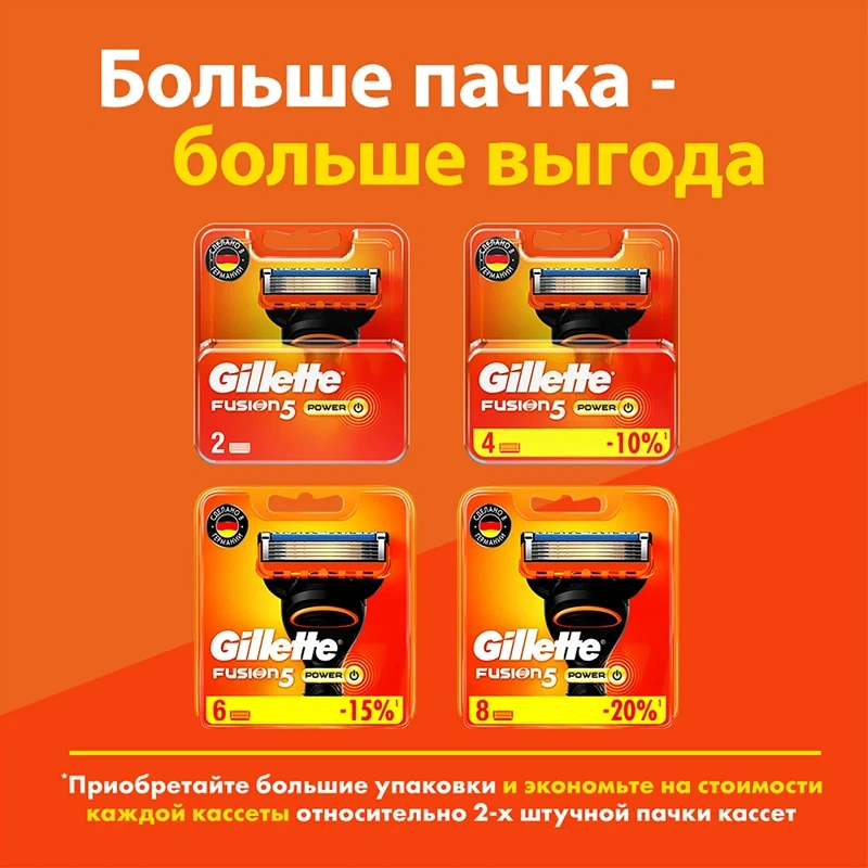 Gillette Fusion5 Power — это мужская бритва с питанием от аккумулятора, которая создает успокаивающие микроимпульсы, снижающие трение и улучшающие скольжение бритвы по коже. Включает 5 лезвий, снижающих трение, для гладкого бритья, которое сохраняется надолго. Технология со стабилизатором лезвий и улучшенная увлажняющая полоска обеспечивают невероятный комфорт. Включает точный триммер на обратной стороне для обработки труднодоступных участков и ухода за бородой и усами. К мужской бритве Fusion5 ProGlide Power подходят все сменные кассеты Fusion5 и Fusion5 Power. Одной кассеты хватает на месяц регулярного бритья. Преимущества: Успокаивающие микроимпульсы, создаваемые бритвенной ручкой с питанием от батарейки, снижают трение, позволяя бритве еще лучше скользить по коже; Бритва Gillette с 5 стальными острыми антифракционными лезвиями для оптимальной точности и эффективности бритья; Гладкое бритье с долговечным эффектом и успокаивающими микроимпульсами; С лезвиями, снижающими трение, которых хватает до 20 процедур бритья; Точное лезвие-триммер для труднодоступных мест и ухода за бородой и усами; Смазывающая полоска обеспечивает хорошее скольжение и невероятный комфорт при бритье. Смазывающая полоска-индикатор поблекнет и напомнит о том, что пришло время сменить кассету, когда бритва перестанет обеспечивать оптимальный результат бритья; Мягкие микрогребни бережно оттягивают и разглаживают кожу, подготавливая волоски к срезанию, обеспечивая гладкое бритье без раздражения; Эргономичная ручка для контроля бритья во влажных условиях; Подходят все сменные кассеты Fusion5 и Fusion5 Power.