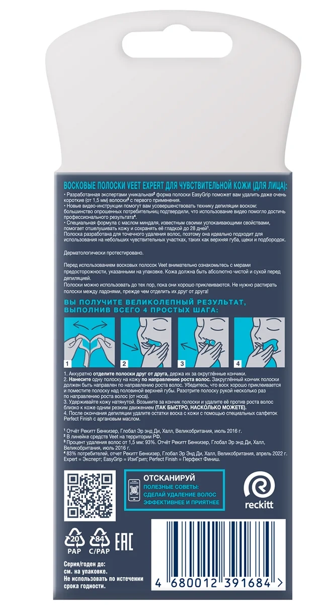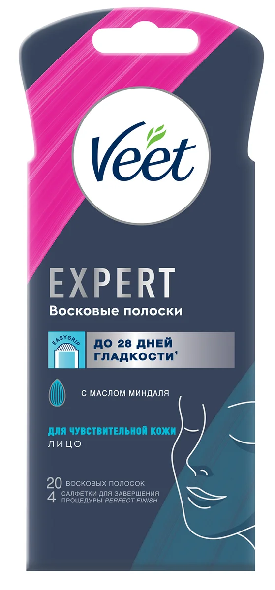 Полоски восковые Veet Expert для лица для чувствительной кожи 20шт, 13г