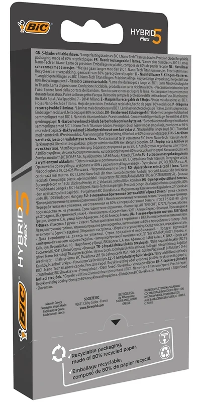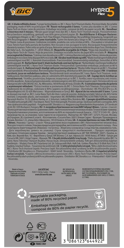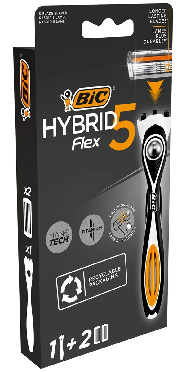 Бритва мужская BIC Flex 5 Hybrid 5 лезвий плавающая головка, 1 ручка и 2 сменные кассеты