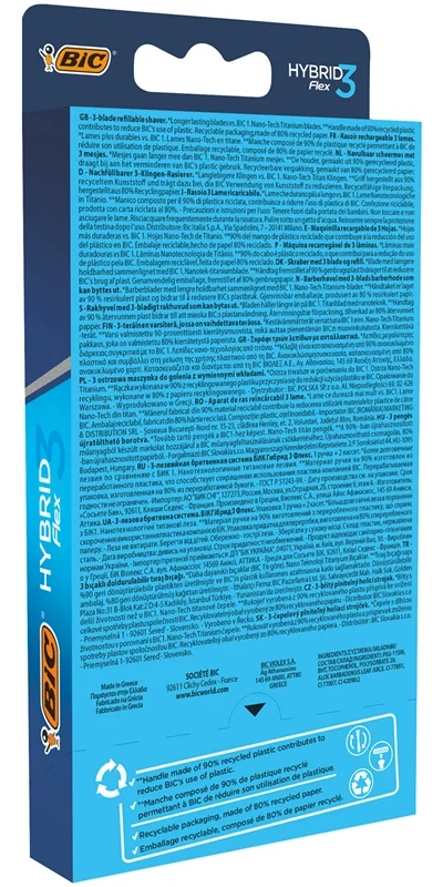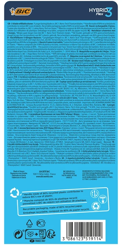 Бритва мужская BIC Hybrid 3 Flex Sensitive 3 лезвия, 1 ручка и 2 сменные кассеты