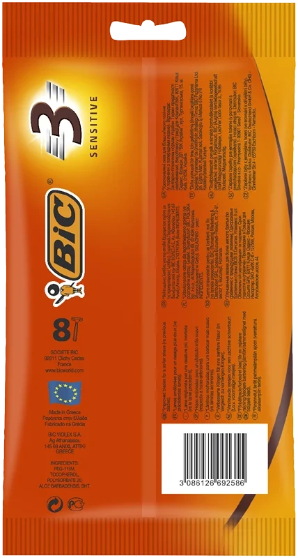 Бритва одноразовая мужская BIC 3 Sensitive 3 лезвия увлажняющая полоска, 8 шт