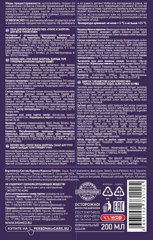 Пена для бритья Ivomed Men Тонус и энергия, 200мл