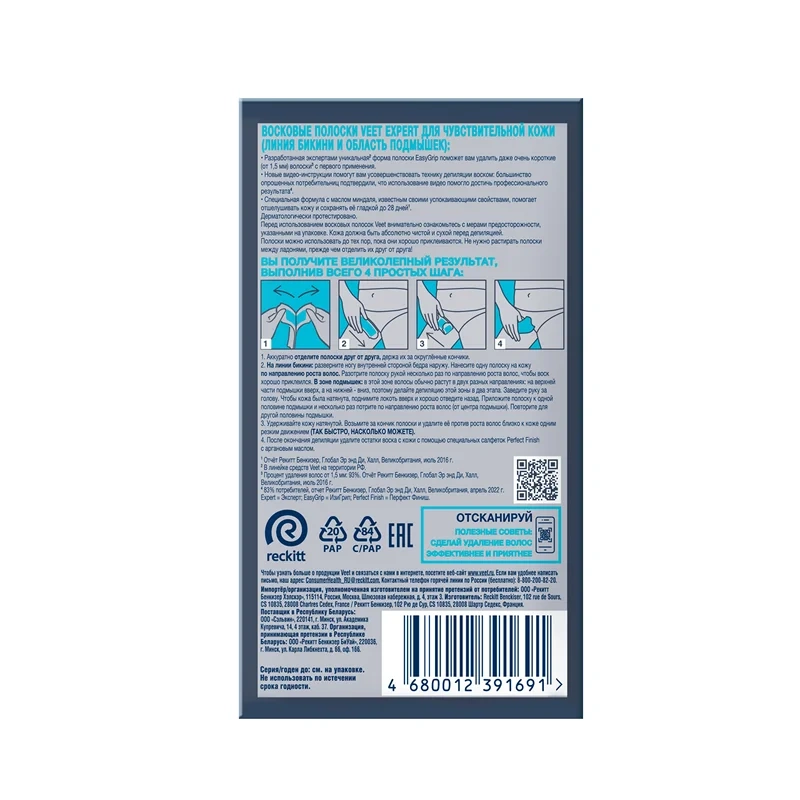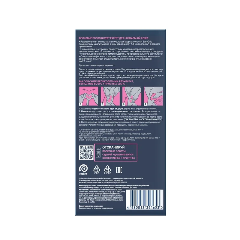 Полоски восковые Veet Expert для нормальной кожи, 12шт