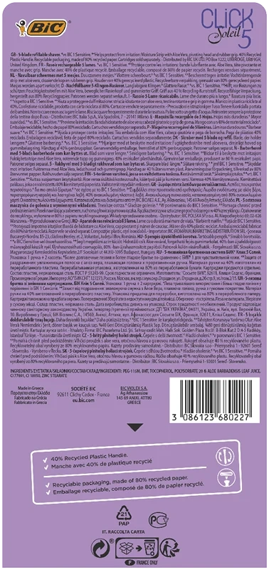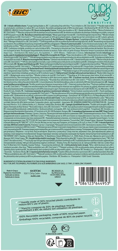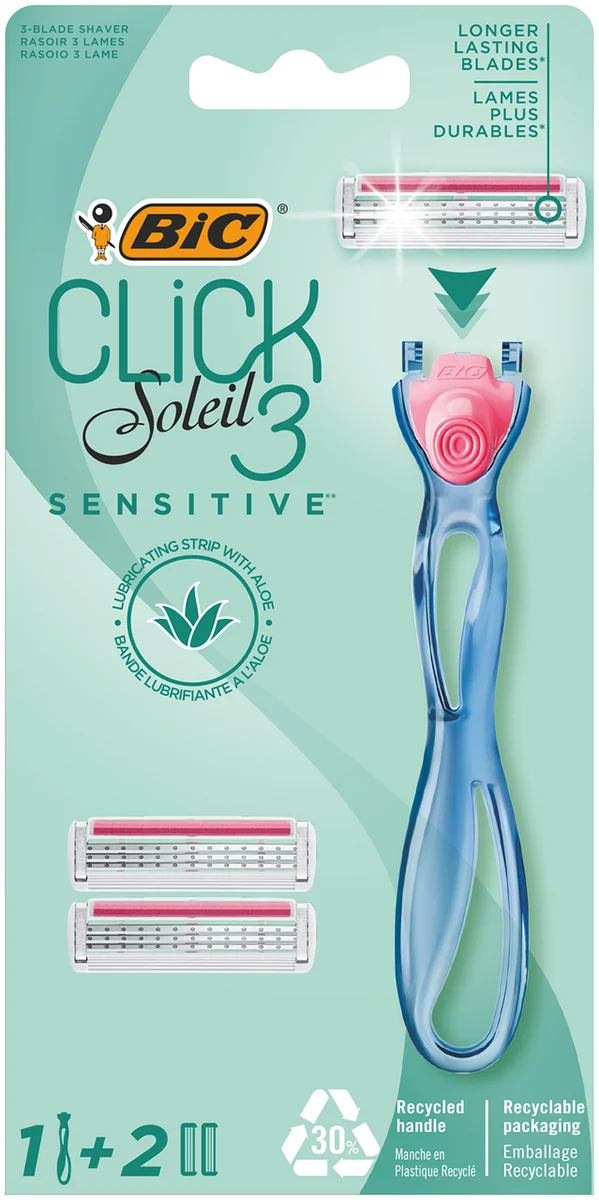 Бритва женская BIC Click 3 Soleil Sensitive 3 лезвия, 1 ручка и 2 сменные кассеты