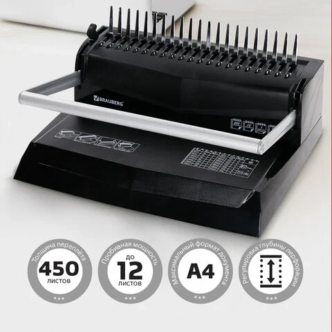 Брошюровщик гребеночный Brauberg B12, на 12 листов, переплет до 450 листов, пластиковая пружина