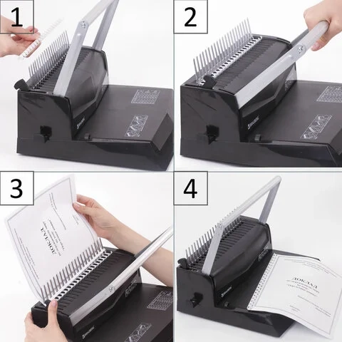 - максимальная толщина переплета: до 450 страниц при использовании 51-мм пружины;