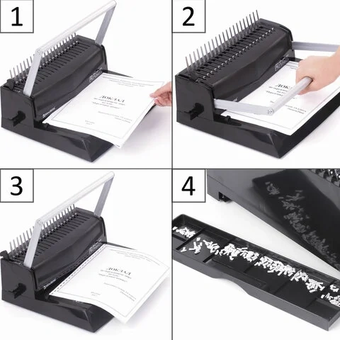Пробивает и переплетает листы формата А3 по короткой стороне, А4, А5, А6, А7 и ниже - по длинной стороне.
