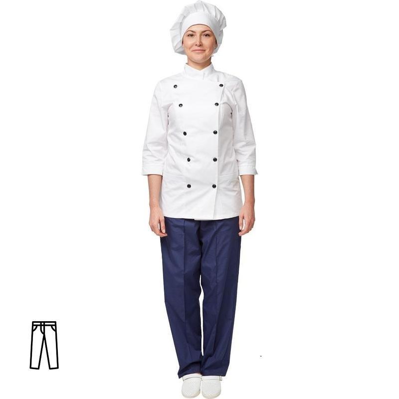 Брюки универсальные прямого кроя с поясом на эластичной ленте. Стрелки расположены спереди. На правой передней полочке брюк один накладной карман. Рекомендована стирка при температуре не выше 40 градусов.