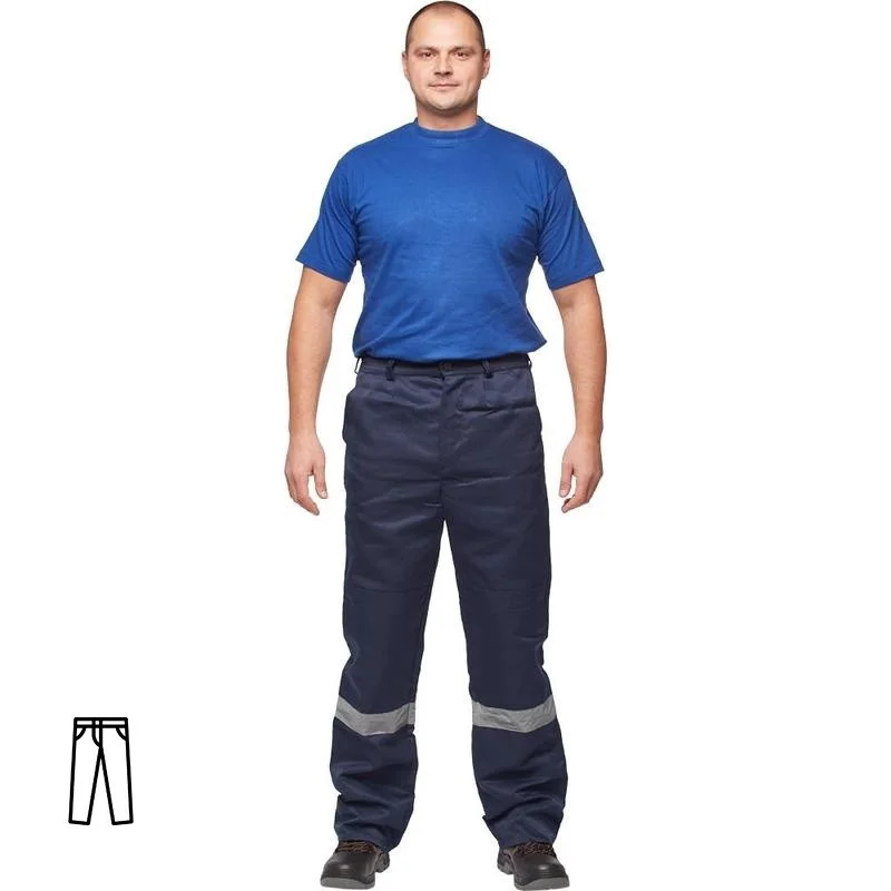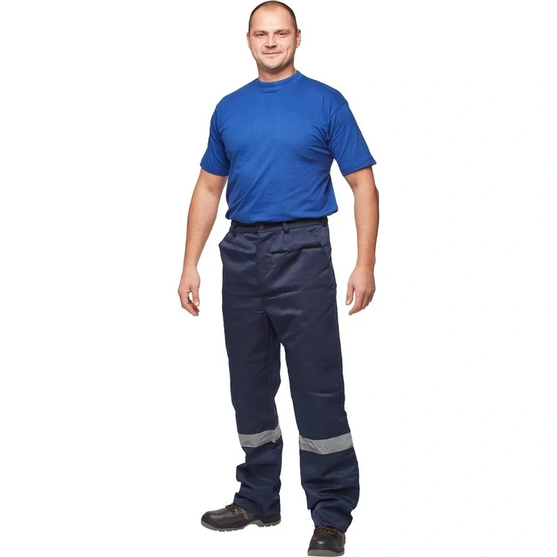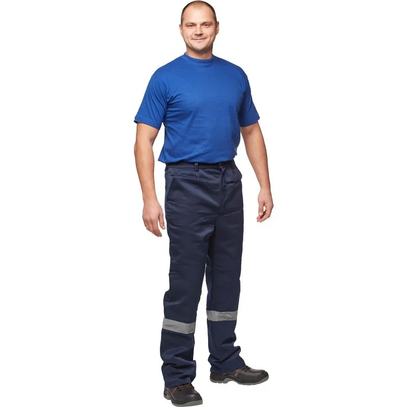 Брюки рабочие летние мужские л03-БР с СОП синие (размер 60-62, рост 158-164). Рабочие брюки летние мужские л03-БР предназначены для использования в различных отраслях, таких как озеленение, строительство и логистика. Изготовлены из смесовой ткани: 80% полиэстер и 20% хлопок. Плотность материала составляет 210 г/кв.м.Защитные свойства:- Ми - защита от механических воздействий (истирание);- З - защита от общих производственных загрязнений.Брюки имеют прямой силуэт и застежку на пуговицы. Боковые накладные карманы удобны для хранения нужных инструментов. Сигнальные элементы из световозвращающего материала улучшают видимость в условиях низкой освещенности. СОП находится на брюках ниже колена. Ширина: 50 мм.Продукт соответствует стандартам ГОСТ 12.4.280-2014 и ТР ТС 019/2011. К брюкам л03-БР подходит куртка л03-КУ. В коллекции также есть полукомбинезон л03-ПК в синем цвете. Коллекция спецодежды л03 представлена также и женскими комплектами: куртка и полукомбинезон л03-КПК-жен. https://www.komus.ru/news/spravochnik-pokupatelya/vybor-razmera-spetsodezhdy/n/15/" target="_blankПодобрать размерЦвет на изображении товара в интернет-магазине или в печатном каталоге может отличаться от оригинала из-за особенностей цветопередачи монитора.