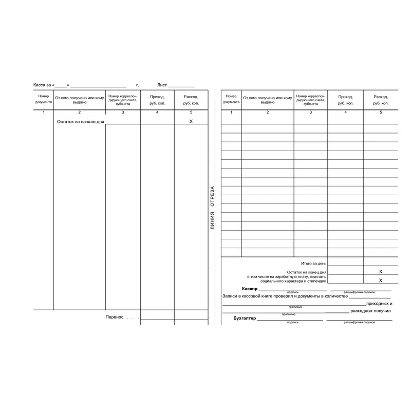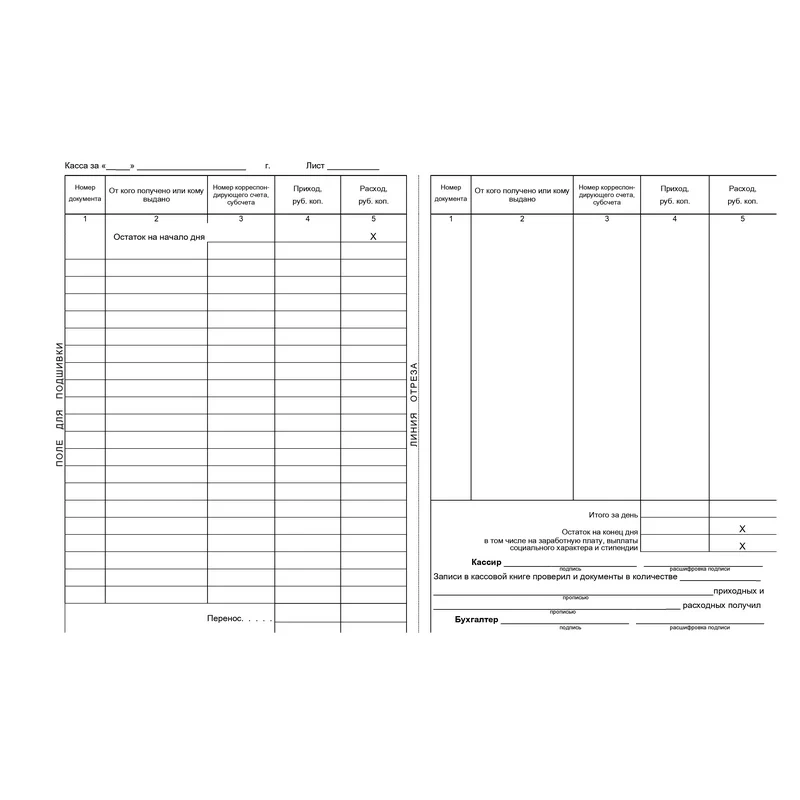 Бухгалтерская кассовая книга предназначена для учета поступлений и выдачи наличных денег в кассе организации. Обложка изготовлена из картона белого цвета. Внутренний блок — 96 листов из офсетной бумаги 55-60 г/кв.м белизной 70 %, крепится к обложке с помощью скрепок.
