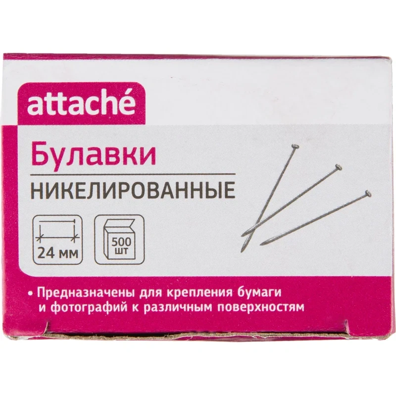 Булавки унив. ник. Attache, 24 мм, 500 штук, в картонной коробке