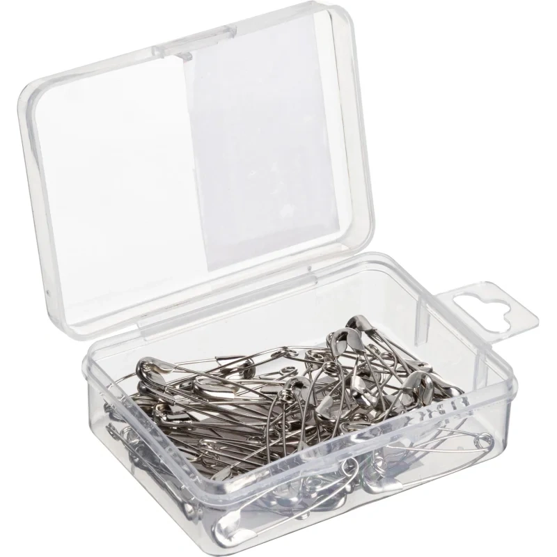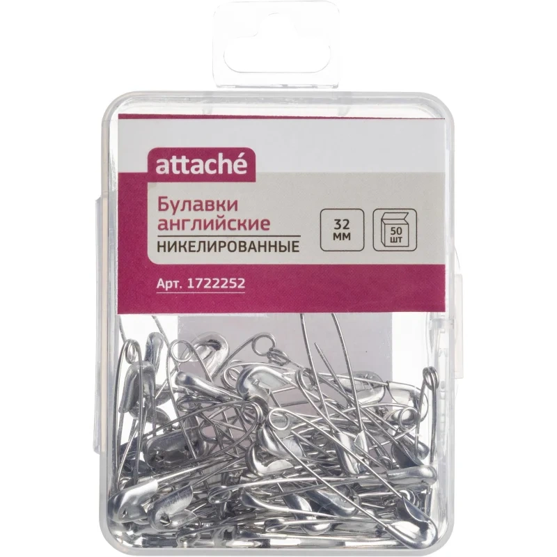 Булавки английские Attache, 32 мм, никелир.,50 шт/уп,пласт.коробка,европодв