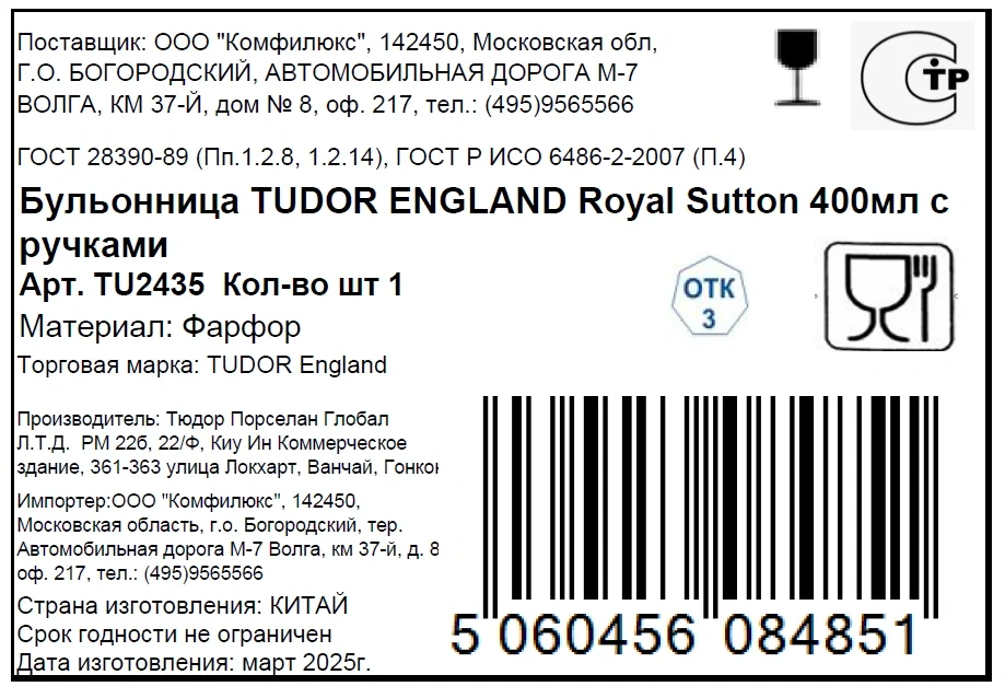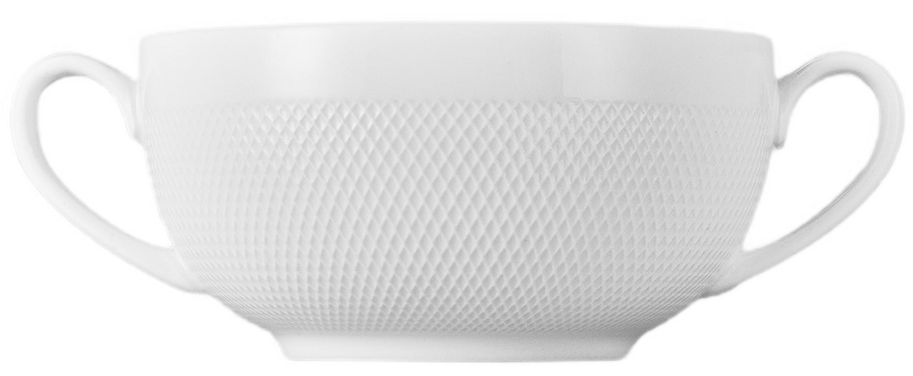 Небольшая белая с молочным оттенком бульонница с ручками из фарфора Royal Sutton Tudor England имеет стильный внешний вид и становится прекрасным дополнением к сервировке стола на завтрак или на обед. Несмотря на большой объем 400мл она рассчитана на индивидуальную порцию супа, бульона или гарнира и горячего блюда, салата, десерта или закуски. Она имеет изящную форму и необычные современные ручки, которые делают использование супницы очень удобным.