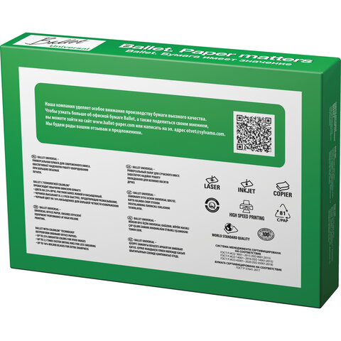Бумага Балет Универсал А4, 500 листов, 80г/м2, белизна 146%CIE