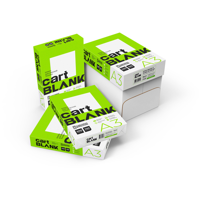 Cartblank — начните новое дело с чистого листа! Минималистичный дизайн пачки с изображением белого бланка в центре композиции символизирует структурность и собранность, присущие началу планирования любого нового проекта с чистого листа, а присутствие яркого цвета на упаковке добавляет динамики привычным процессам. Современная офисная бумага марки 'С' Cartblank помогает с легкостью воплощать все задуманные идеи и предоставляет полную свободу действий, обладая всеми необходимыми характеристиками и предотвращая непредвиденные сложности в рабочем процессе. Бумага сертифицирована по стандарту ГОСТ Р 57641-2017 «Бумага ксерографическая для офисной техники», а также для архивного хранения по стандарту ГОСТ Р ИСО 9706-2000. Бумага отбелена без применения хлора (ECF), а древесина для продукции происходит из ответственно управляемых лесов. Система лесоуправления производителя сертифицирована по стандарту экологического менеджмента ISO 14001. Система проверки легальности происхождения древесного сырья для данной продукции соответствует международному стандарту «Цепочка поставок древесины и продукции из древесины» ISO 38200:2018 и стандартам Forest Certification 'Legal Origin'. Страна-производитель — Россия.