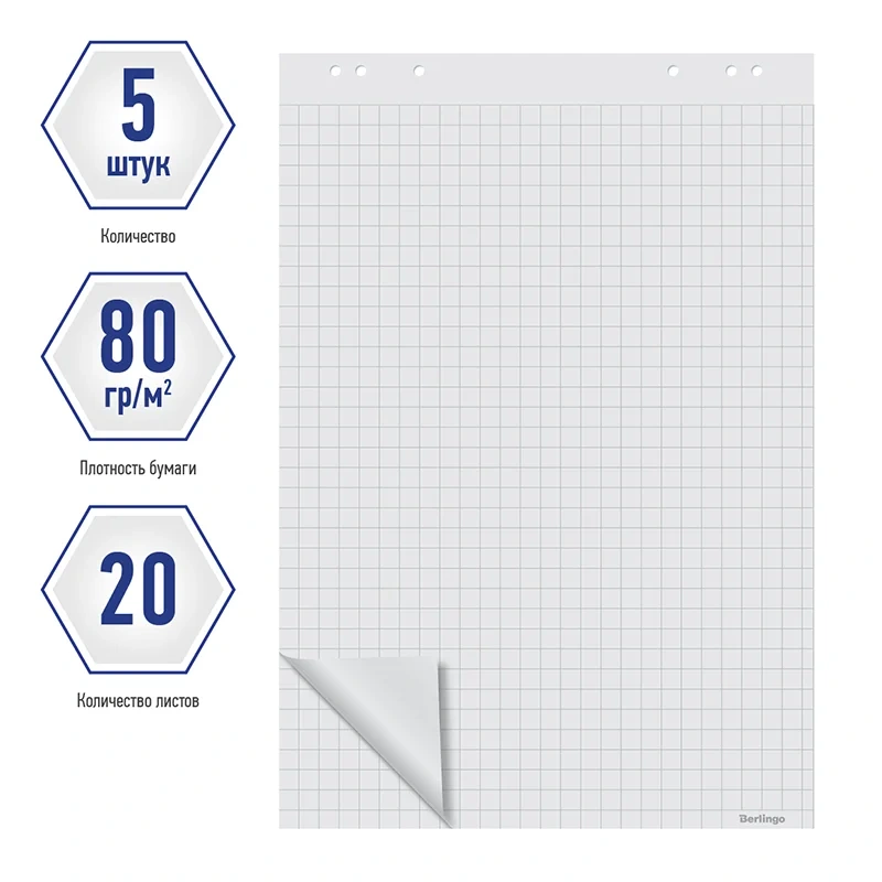 Бумага для флипчарта Berlingo SFb_20011 64х96см, 20 листов, белый в клетку