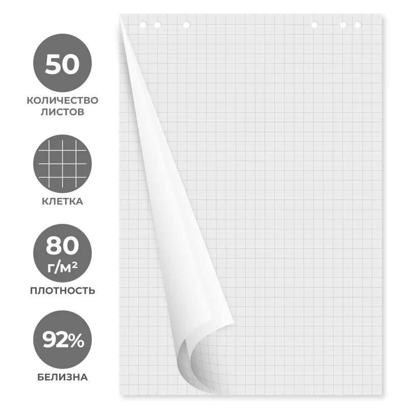 Бумага для флипчарта Attache 67.5х98см, белый, в клетку, 50 листов