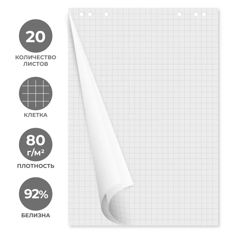 Бумага для флипчартов блок бумаги д/флипчартов клетка 67,5х98 20 л. 80гр.
