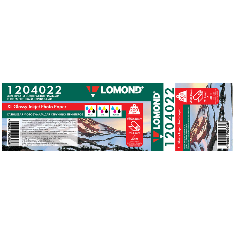 Бумага для плоттера глянцевая Lomond, 914мм*30м, 200г/м2, вт. 50,8 мм