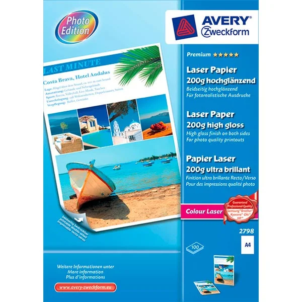 Бумага для принтера Avery Zweckform Премиум А4, 100 листов, 210x297мм, 200 г/м2, белая суперглянцевая, 2798