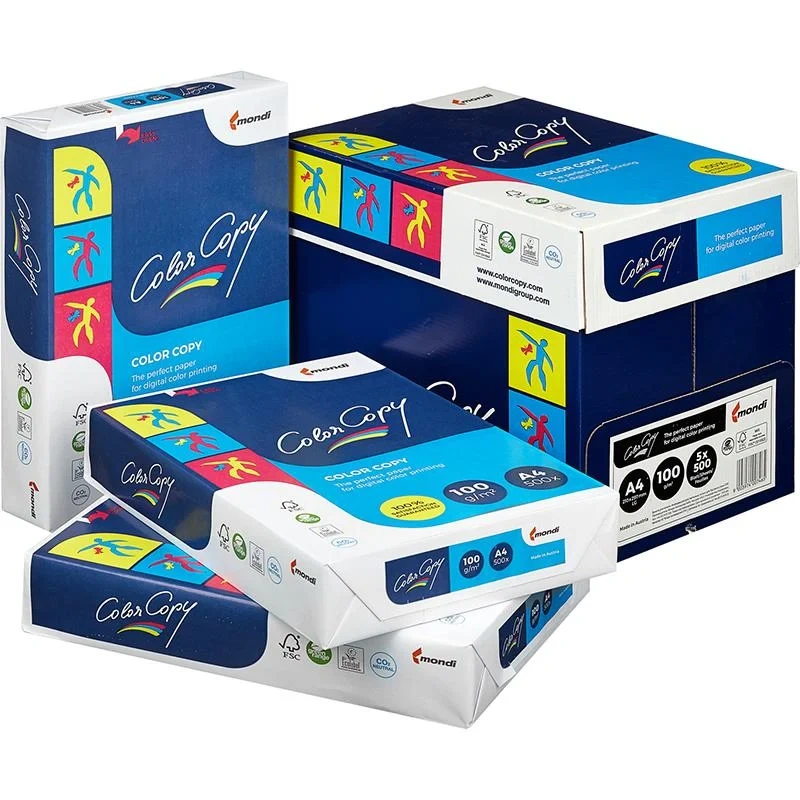 Бумага для цветной лазерной печати Color Copy (А4, 100 г/кв.м, 500 листов) Бумага Color Copy формата А4 предназначена для печати на монохромных и цветных лазерных принтерах, на цветных копировальных аппаратах и на цифровых печатных устройствах. Плотность бумаги составляет 100 г/кв.м, толщина - 106 мкм, высокая степень белизны - 161%. Поверхность гладкая, с однородной структурой. Пачка содержит 500 листов. Превосходный визуальный эффект с яркими и точными цветами обязательно привлечет внимание к Вашим материалам. Вы можете достичь всего этого с Color Copy благодаря широчайшей цветовой гамме на цветной лазерной печати. С Color Copy можно добиться передачи натуральных оттенков кожи и воспроизведения всей палитры цветов, даже таких сложных как желтый/зеленый. Высочайший цветовой охват достигается сбалансированными и оптимизированными свойствами бумаги. Специальная обработка поверхности Color Copy в сочетании с ее гладкостью гарантирует четкость цветовоспроизведения в самом широком спектре. Предназначена для односторонней и двусторонней печати. Дополнительные преимущества: - обработанная особым способом поверхность позволяет отлично закрепляться тонеру; - беспроблемная обработка бумаги в печатной машине; - исключительные экологические свойства с сертификатами FSC, EU Ecolabel, CO2 neutral; - не токсична, стойкость к нагреву до 200 градусов; - стойкость к старению, сертифицирована ISO 9706; - одобрена ведущими производителями печатной техники. Страна производитель: Австрия.