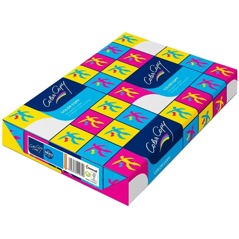Бумага Color Copy формата SRA3 предназначена для печати на монохромных и цветных лазерных принтерах, на цветных копировальных аппаратах и на цифровых печатных устройствах. Плотность бумаги составляет 250 г/кв.м, толщина — 245 мкм, высокая степень белизны — 161%. Поверхность гладкая, с однородной структурой. Пачка содержит 125 листов. Превосходный визуальный эффект с яркими и точными цветами обязательно привлечёт внимание к Вашим материалам. Вы можете достичь всего этого с Color Copy благодаря широчайшей цветовой гамме на цветной лазерной печати. С Color Copy можно добиться передачи натуральных оттенков кожи и воспроизведения всей палитры цветов, даже таких сложных как жёлтый/зелёный. Высочайший цветовой охват достигается сбалансированными и оптимизированными свойствами бумаги. Специальная обработка поверхности Color Copy в сочетании с её гладкостью гарантирует чёткость цветовоспроизведения в самом широком спектре. Предназначена для односторонней и двусторонней печати.
