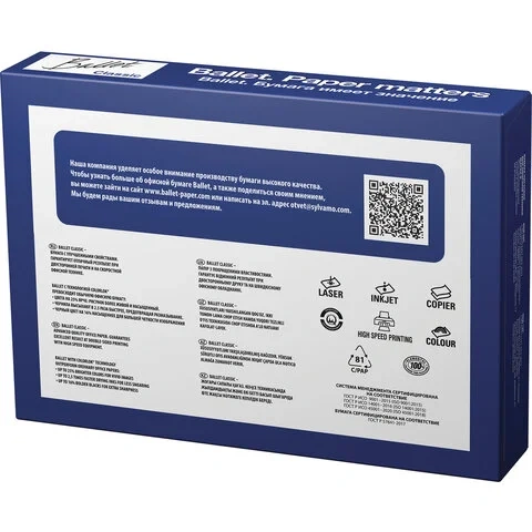 Бумага для принтера Ballet Classic А4, 500 листов, 80г/м2, белизна 153%CIE