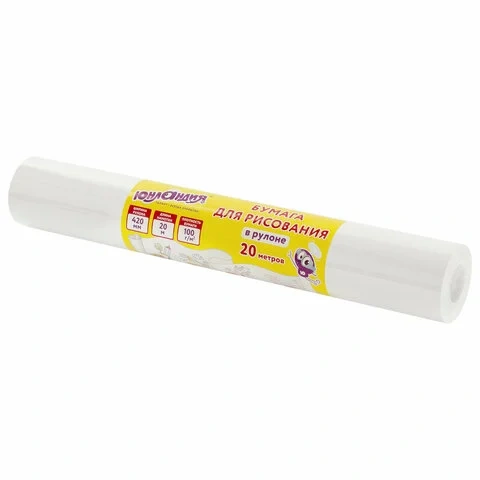 Бумага для рисования в рулоне ЮНЛАНДИЯ 'РИСУЙ-ИГРАЙ-УЧИСЬ', 420 мм х 20 м, плотность 100 г/м2, 11217