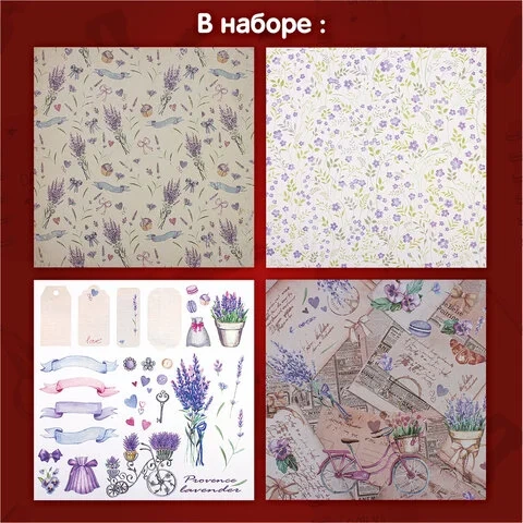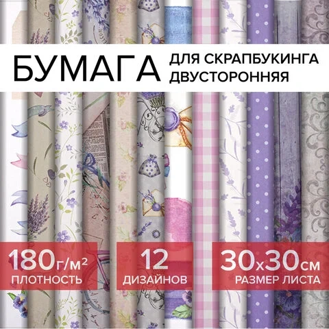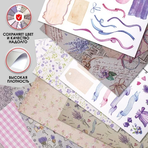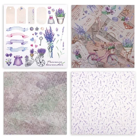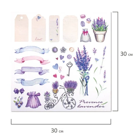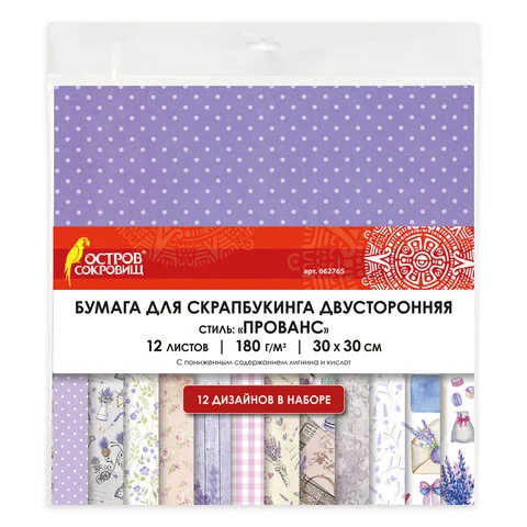 Бумага для скрапбукинга 30х30 см 'Прованс', двусторонняя, 12 листов, 12 дизайнов, 180 г/м2, ОСТРОВ С