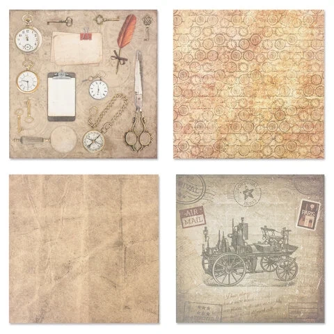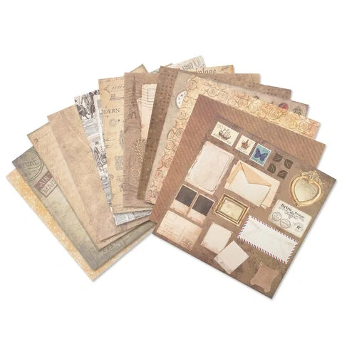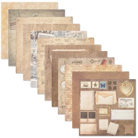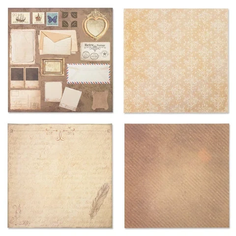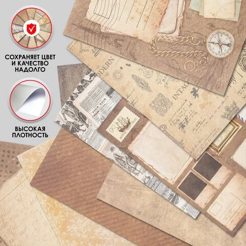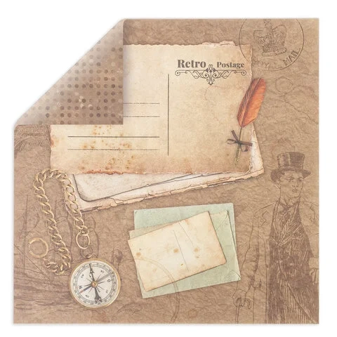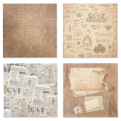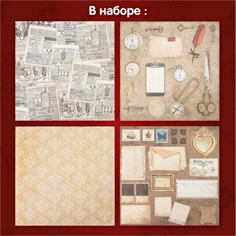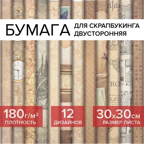 Бумага для скрапбукинга 30х30 см 'Ретро', двусторонняя, 12 листов, 12 дизайнов, 180 г/м2, ОСТРОВ СОК