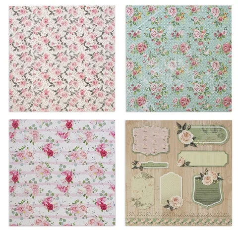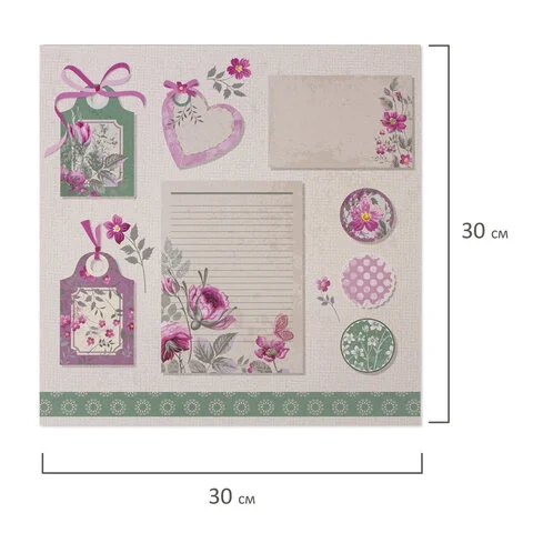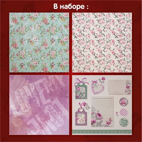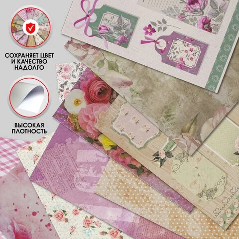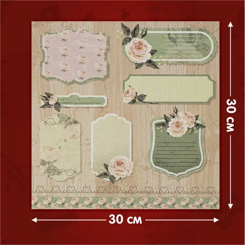 Бумага для скрапбукинга 30х30 см 'Шебби-шик', двусторонняя, 12 листов, 12 дизайнов, 180 г/м2, ОСТРОВ