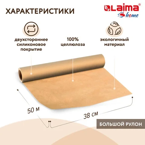 Бумага для выпечки профессиональная силиконизированная 38 см х 50 м, 41 г/м2, LAIMA, 608437