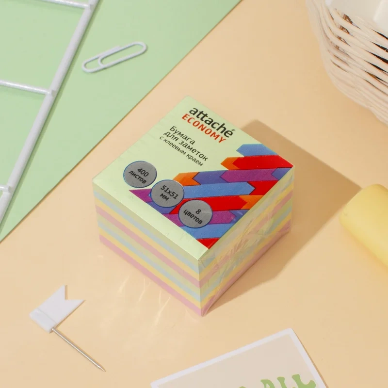Стикеры Attache Economy подходят для использования в офисе, дома, во время обучения. Формат: 51?51 мм. Клеевая система — 18 Н/м. Длина клейкой стороны 51 мм. 1 блок из 400 листов упакован в термопленку. 8 пастельных цветов: пурпурный, желтый, синий, зеленый, фиолетовый, оранжевый, розовый, охра. Особых условий хранения не требует, сертификации не подлежит, срок годности не ограничен.