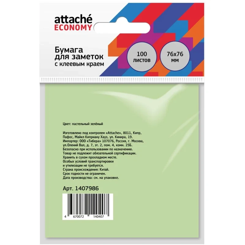 Бумага для заметок с клеевым краем Economy 76x76 мм 100 л паст. зеленый Стикеры Attache Economy подходят для использования в офисе, дома, во время обучения. Формат: 76x76 мм. Клеевая система - 18 Н/м. Длина клейкой стороны 76 мм. 1 блок из 100 листов упакован в термопленку. Цвет: пастельный зеленый. Особых условий хранения не требует, сертификации не подлежит, срок годности не ограничен. Чтобы увеличить срок службы стикеров, пожалуйста, следуйте рекомендациям: 1) Отделять стикер от блока следует вдоль клеевой полосы. Так можно избежать скручивания и последующего отклеивания стикера. 2) Прежде чем наклеивать стикер, убедитесь в отсутствии грязи и пыли на поверхности. На чистой поверхности срок службы клеевого слоя более продолжителен. Товар относится к ценовому сегменту 'суперэконом'. Имеет упрощенные характеристики и более простую упаковку. Отвечает основным требованиям потребления.