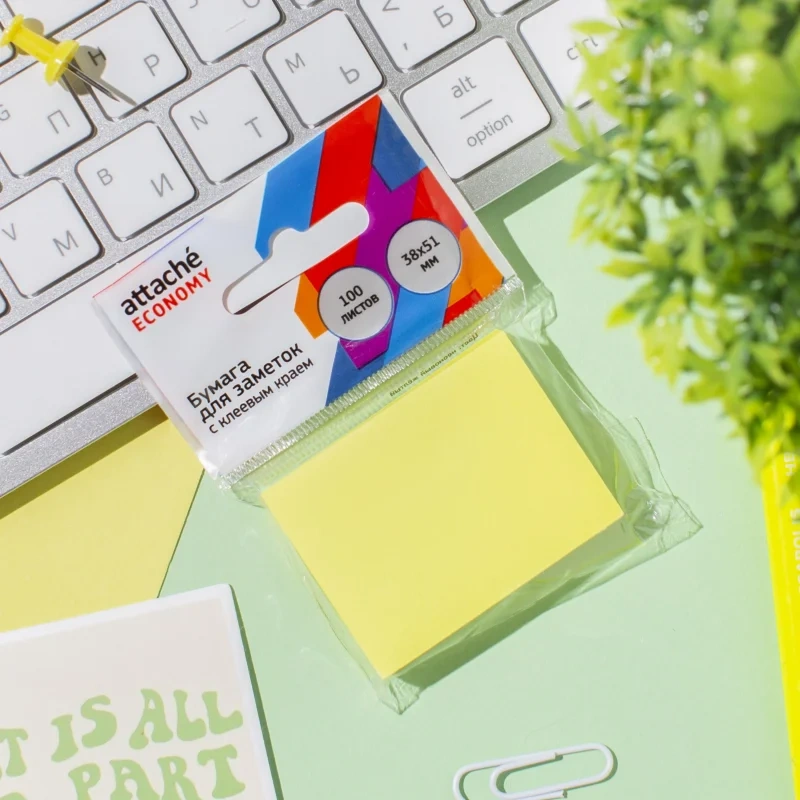 Стикеры Attache Economy с клеев.краем 38x51 мм, 100 лист неоновый желтый
