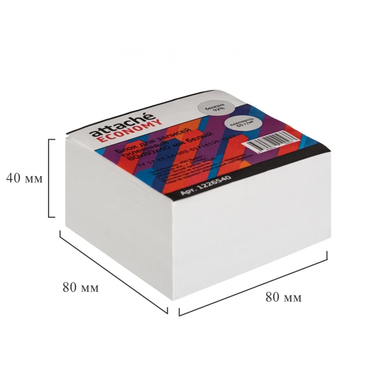 Блок для записей Attache Economy проклеенный 8х8х4, белый, 65 г, 92