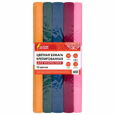Бумага гофрированная/креповая, 110 г/м2, 50х250 см, 10 рулонов, интенсив, ОСТРОВ СОКРОВИЩ, 112555