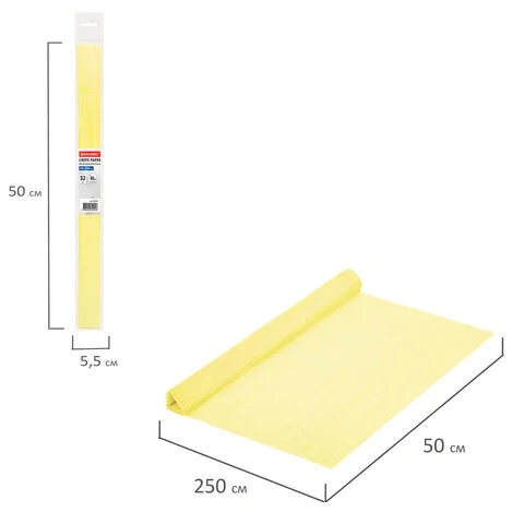Гофрированная (креповая) бумага представляет собой бумажную продукцию с неровной, складчатой поверхностью. Размер бумаги - 50х250 см, плотность – 32 г/м2, удлинение при натяжении – 45%. Цвет - Молочный.