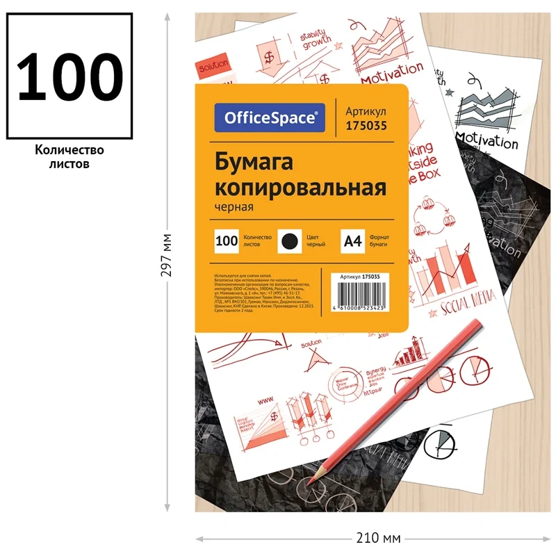 Бумага копировальная Officespace черная, А4, 100 листов