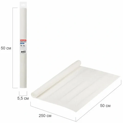 Бумага крепированная Brauberg белая, 50х250см, 32г/м, растяжение до 45%