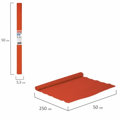 Бумага крепированная Brauberg оранжевая, 50х250см, 32г/м, растяжение до 45%