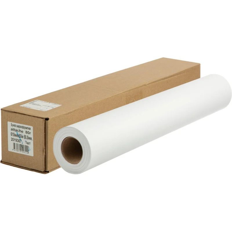 Бумага широкоформатная Attache 80г 610ммх50м 50,8мм Широкоформатная бумага ProMEGA , предназначенная для печати технической документации, инженерной и деловой графики. Совместима со струйными черно-белыми плоттерами и принтерами НP, Сanon, Еpson, Xerox. Бумажное полотно белизной (100%) имеет размер 610 мм, что соответствует формату А1. Защитная полиэтиленовая пленка на упаковке сохраняет форму рулона и позволяет поддерживать нормальный уровень влажности. Длина рулона - 50 м. Рекомендована ведущими производителями печатающей техники.