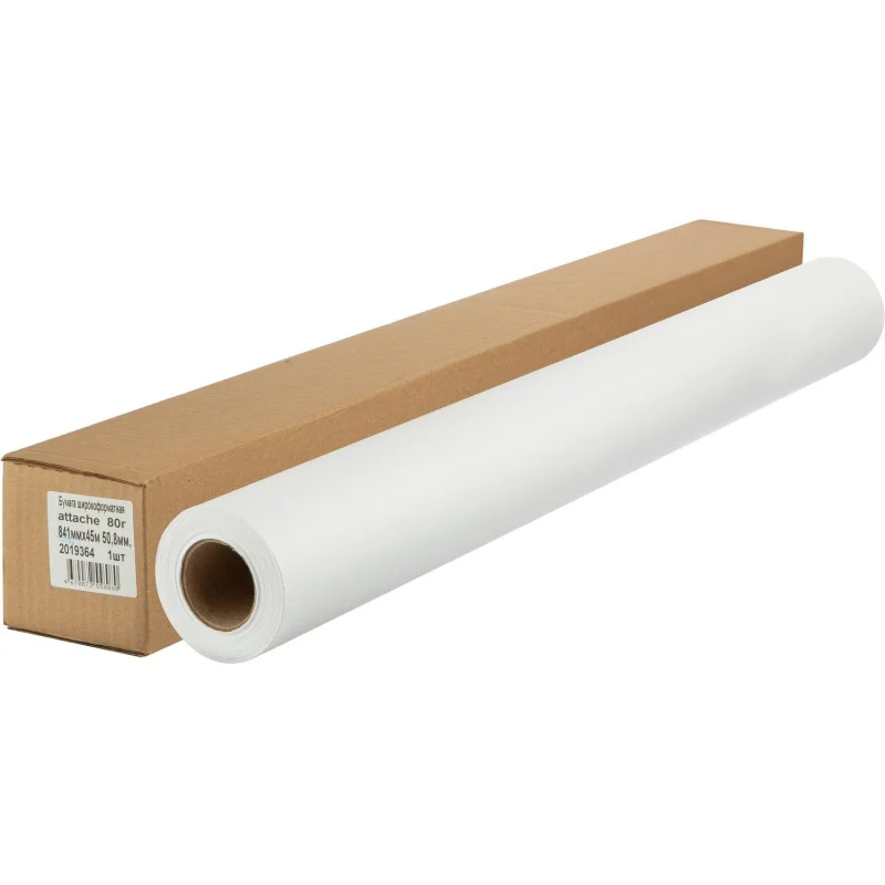 Бумага широкоформатная Attache 80г 841ммх45м 50,8мм Широкоформатная бумага ProMEGA , предназначенная для печати технической документации, инженерной и деловой графики. Совместима со струйными черно-белыми плоттерами и принтерами НP, Сanon, Еpson, Xerox. Бумажное полотно имеет 100% белизны. Ширина рулона 841 мм, что соответствует формату A0. Защитная полиэтиленовая пленка на упаковке сохраняет форму рулона и позволяет поддерживать нормальный уровень влажности. Длина рулона - 45 м. Рекомендована ведущими производителями печатающей техники.